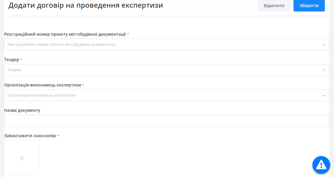 | 3 | Організація виконавець експертизи | випадаючий список |