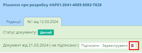 Для видалення дії, користувачу необхідно натиснути на кнопку вилучення, яка знаходиться у верхній частині картки (Рисунок 10)