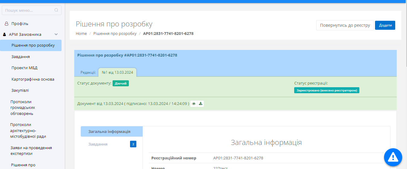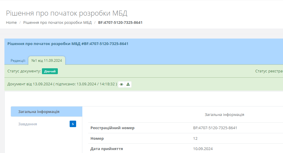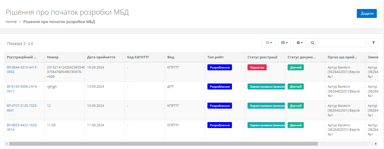 У даному реєстрі відображені всі додані рішення про початок розробки МБД.
