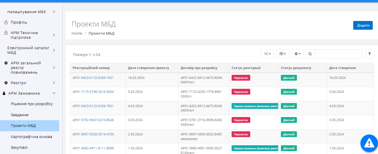 Після переходу до реєстру користувачу буде доступна табличка із проектами МБД (Рисунок 265)
