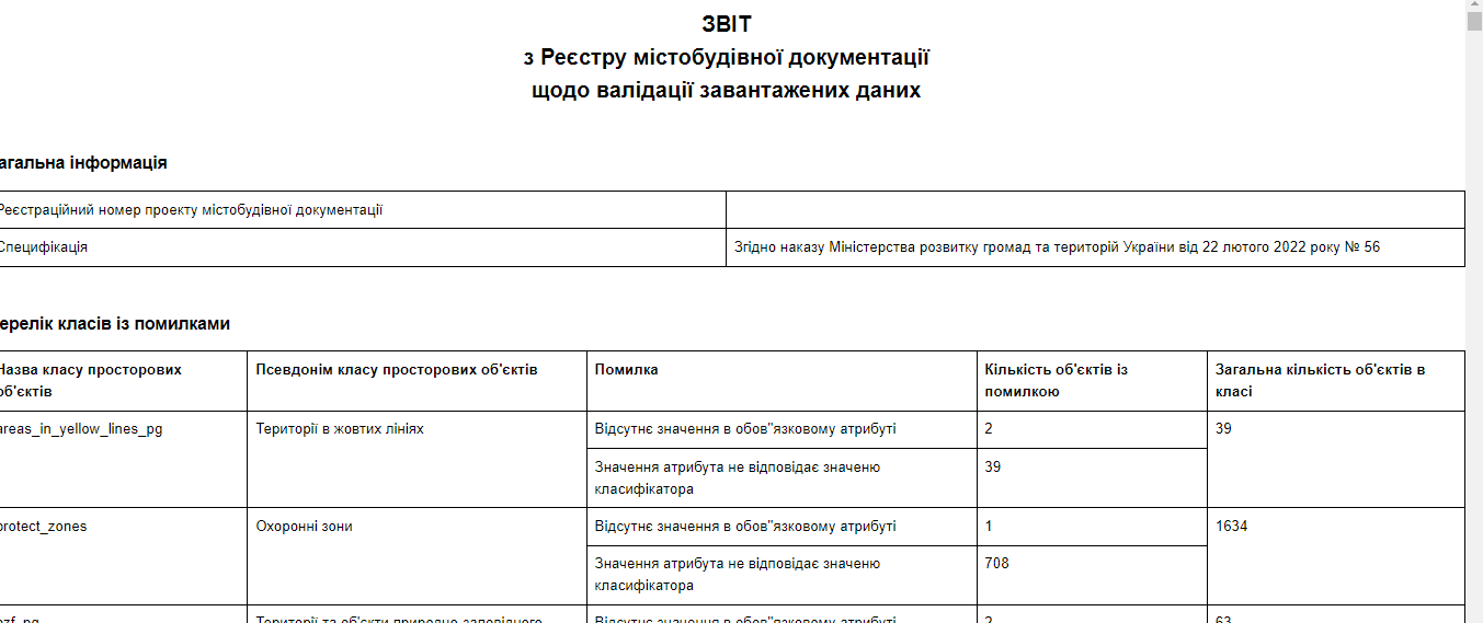 Приклад Звіту з Реєстру містобудівної документації щодо валідації завантажених даних (Рисунок 273)