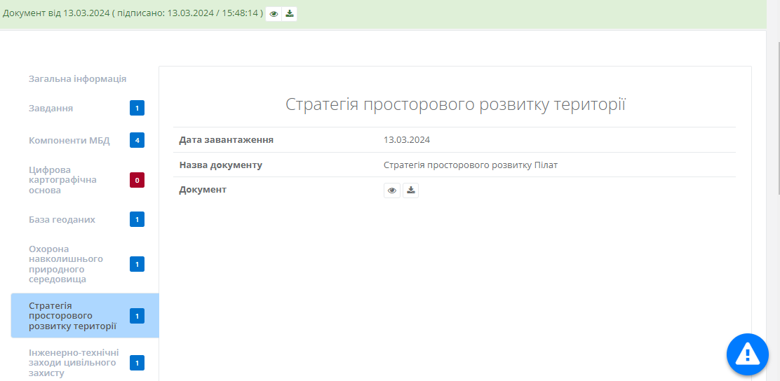 Вкладка містить відомості про розділ стратегії просторового розвитку території проекту МБД (Рисунок 275):