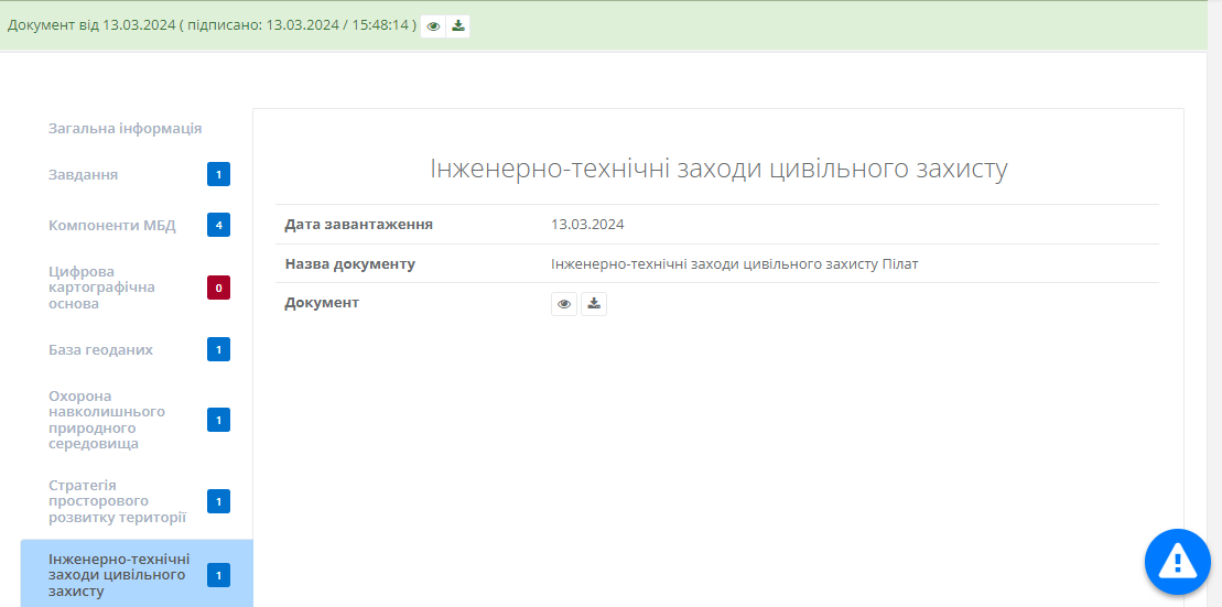 Вкладка “Інженерно-технічні заходи цивільного захисту”