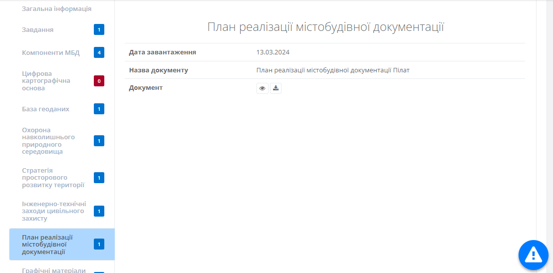 Вкладка “План реалізації містобудівної документації”