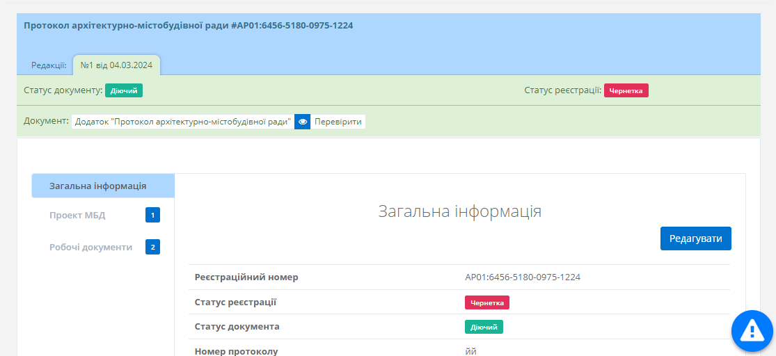 Картка протоколу виглядає подібним чином (Рисунок 116), загальну інформацію також можна редагувати натиснувши на однойменну кнопку у верхній частині картки.
