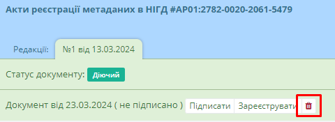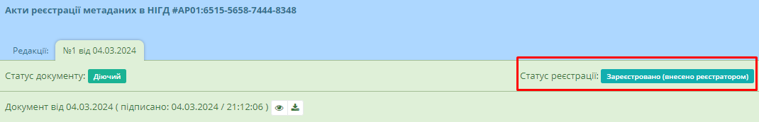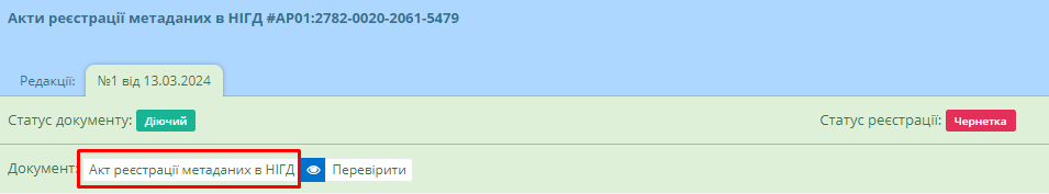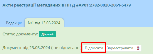 Тут буде зазначена інформація про акт реєстрації метаданих в НІГД.