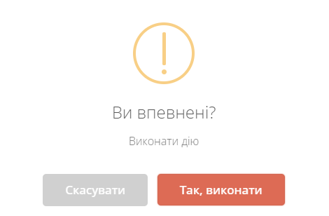 Для верифікації дії видалення необхідно натиснути на кнопку “Так, виконати” (Рисунок 246)