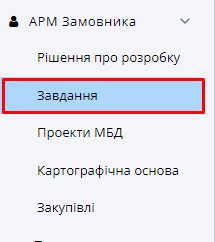 Для того щоб потрапити в реєстр завдань користувачу необхідно перейти в електронний кабінет Замовника містобудівної документації та у ньому перейти до розділу під назвою “Завдання” (Рисунок 16):