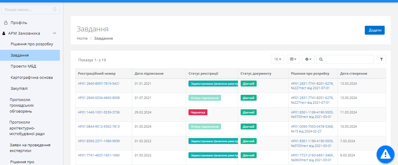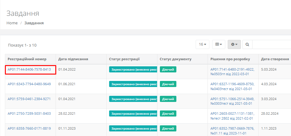 Після переходу до реєстру користувачу буде доступна табличка зі створеними завданнями (Рисунок 17)