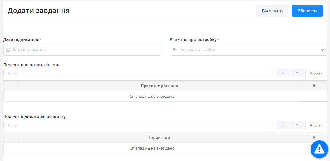 Для створення нового завдання користувачу необхідно натиснути на кнопку , яка знаходиться у верхній частині реєстру. Після чого користувачу відкриється форма додавання нового завдання. Форма виглядає наступним чином (Рисунок 18):