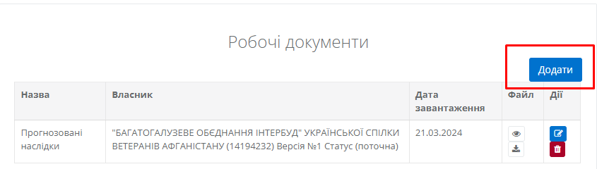 Для того, щоб додати новий документ, необхідно натиснути на кнопку “Додати”, яка знаходиться у верхній частині (Рисунок 28).