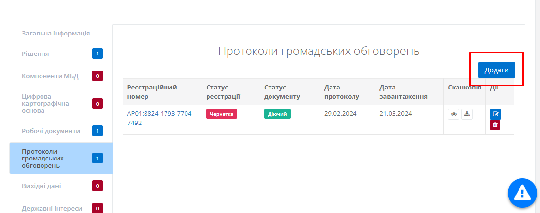 Вкладка “Протоколи громадських обговорень”