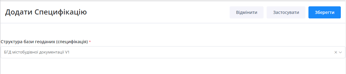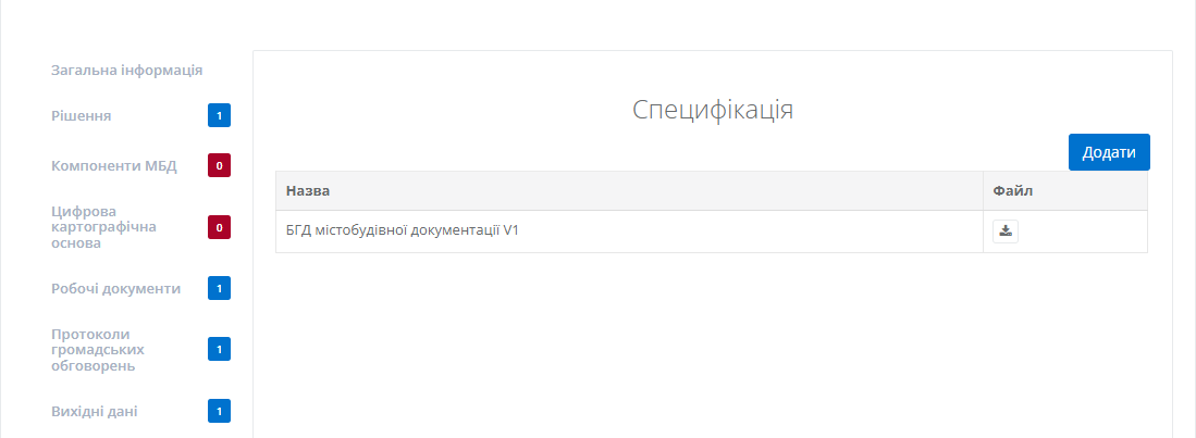 Користувач має можливість вибирати необхідну специфікацію БГД. Для цього необхідно натиснути на кнопку “Додати”, яка знаходиться у верхній частині.