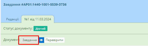 Після створення документу та натиснення кнопки “Зберегти”, система автоматично перемістить користувача в реєстр створених завдань, де користувач має самостійно вибрати новостворений запис та перейти до картки документу.