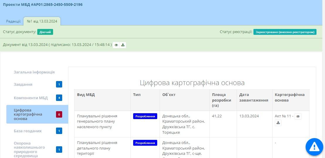 Вкладка містить відомості про цифрову картографічну основу проекту МБД (Рисунок 28):