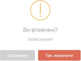 Після вчинення дій з підписання документу власним КЕП користувач має натиснути на кнопку “Зареєструвати” та підтвердити правильність дій (Рисунок 67):