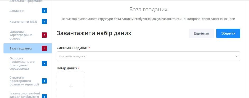 Далі необхідно внести відомості про систему координат та завантажити набір даних та натиснути кнопку “Зберегти” (Рисунок 30):