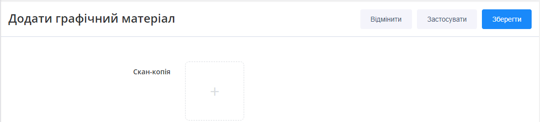 Після цього користувач повинен натиснути кнопку та завантажити сканкопію креслення. В цьому випадку відкриється форма внесення даних (Рисунок 52) яку необхідно заповнити та завантажити сканкопію графічного креслення яке додається.