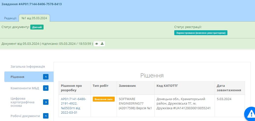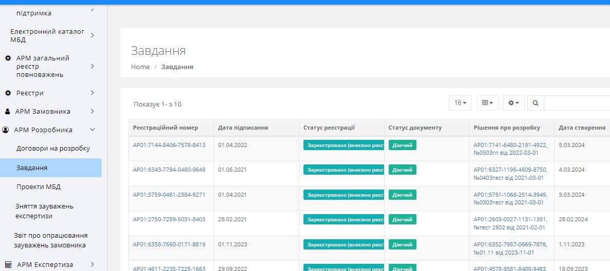 Після переходу до реєстру користувачу буде доступна табличка з завданнями на розробку містобудівної документації (Рисунок 9).
