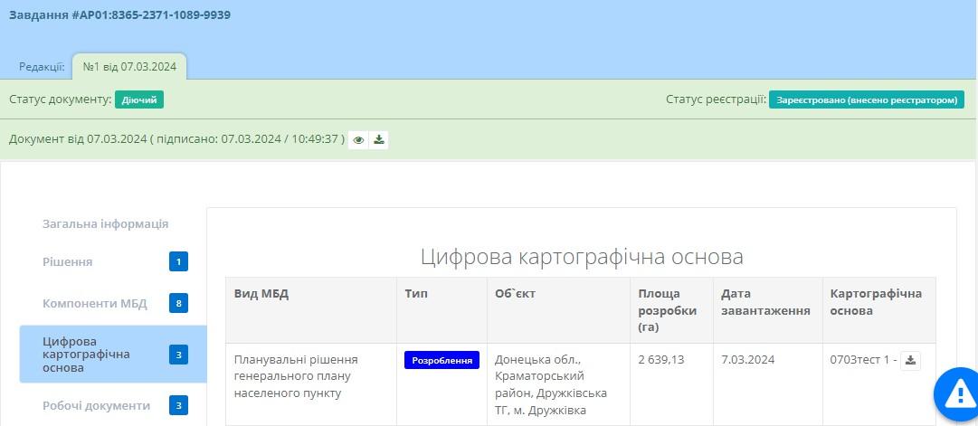 Відображає список картографічної основи містобудівної документації які були додані Замовником до поточного завдання (Рисунок 15).