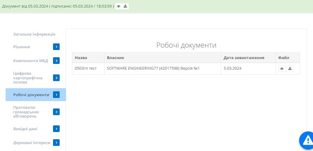 В цій таблиці користувач може переглянути або завантажити робочі документи натиснувши на відповідні кнопки та