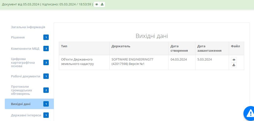 В цій таблиці користувач може переглянути або завантажити державні інтереси натиснувши на відповідні кнопки та