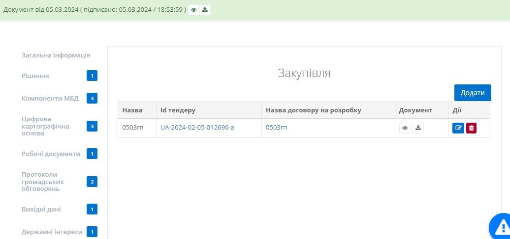 Дана вкладка містить відомості про закупівлю послуг щодо розроблення проекту МБД (Рисунок 20):