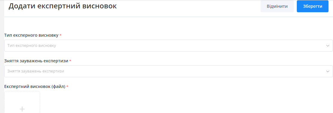 | 2 | Експертний висновок (файл) | місце для завантаження файлу |