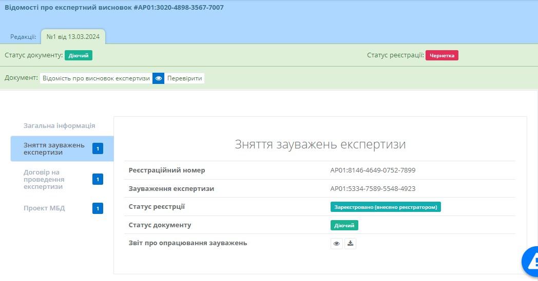 | 1 | Зняття зауважень експертизи | випадаючий список |